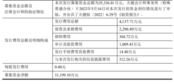 联翔股份本次发行费用总额为4,137.71万元,其中,保荐及承销费用为2,296.89万元。