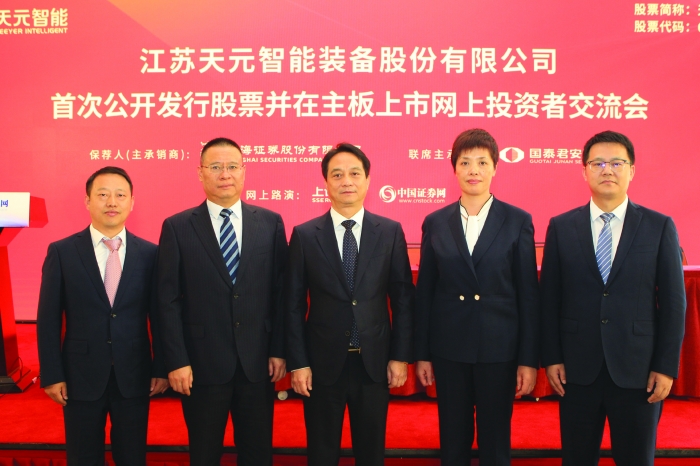 江苏天元智能装备股份有限公司首次公开发行股票并在上交所主板上市的网上路演活动已临近尾声。公司此次发行上市离不开各位网友和投资者朋友的热情参与和加油助力,更离不开保荐人、主承销商东海证券股份有限公司以及所有中介机构的保驾护航。在此,诚挚感谢各位对天元智能的热心关注和大力支持!
