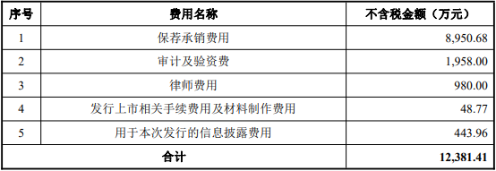 恒兴新材本次发行费用总额为12,381.41万元,其中,保荐承销费用8,950.68万元。