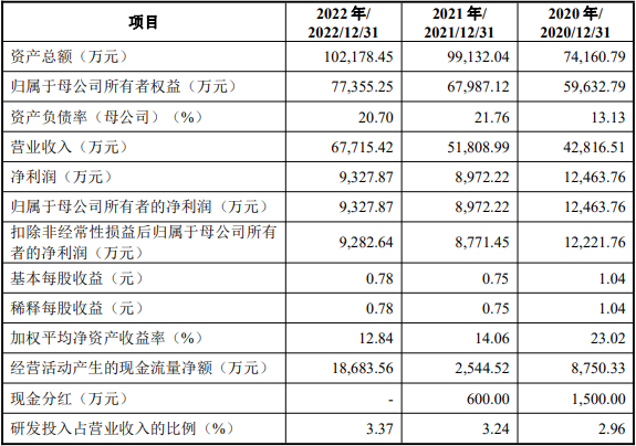 2020年至2022年,恒兴新材实现营业收入分别为42,816.51万元、51,808.99万元和67,715.42万元,实现净利润/归属于母公司所有者的净利润分别为12,463.76万元、8,972.22万元和9,327.87万元,实现扣除非经常性损益后归属于母公司所有者的净利润分别为12,221.76万元、8,771.45万元和9,282.64万元。