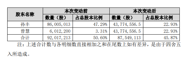 时隔一年,2022年12月13日,赛腾股份收到法院出具民事判决书,经法院判决准许原告曾慧与被告孙丰离婚;夫妻共同财产中,原、被告持有的赛腾股份合计8754.9113万股各半分割,被告孙丰于判决生效后三十日内将其名下的3776.23565万股权变更登记至原告曾慧名下;股权变更产生的相关税费原、被告各半负担。