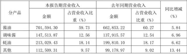 从产品来看,上半年,海天味业“一体两翼”的增速已明显放缓,尤其是核心支柱酱油业务,同比仅增长5.84%至70.16亿元;蚝油、调味酱的收入分别为21.30亿元、14.75亿元,同比分别增长了6.62%、6.96%。