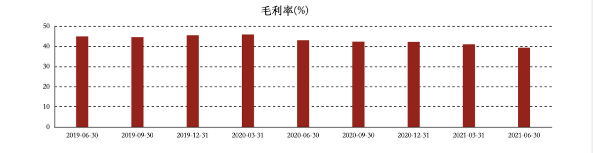 成本带来的经营压力开始在毛利率上有所体现。2021年上半年,海天味业的毛利率为39%,同比下降了3个百分点,但整体依然维持着较高的利润空间。