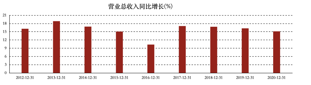 海天味业以调味品著称,公司酱油产销量连续二十多年稳居全国第一,遥遥领先的市场份额也创造了不错的业绩增速。从2000年到2020年,海天味业的营收增长了4倍,从55亿元增长至227亿元,市值最高时超过7000亿元。