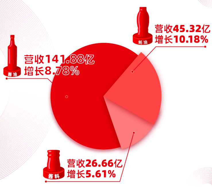 而且从其主营业务分行业情况来看,海天味业酱油实现营收141.88亿元,增长8.78%;蚝油实现营收45.32亿元,增长10.18%;酱料实现营收26.66亿元,增长5.61%,市占率稳步提升。