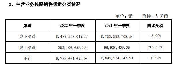 主营业务按照销售渠道分类来看,海天味业一季度线上渠道营收为2.93亿元,同比增202.23%。