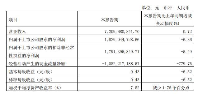 4月28日电海天味业28日晚间披露一季报称,一季度实现营业收入72.10亿元,同比增长0.72%;净利润18.29亿元,同比下降6.36%。