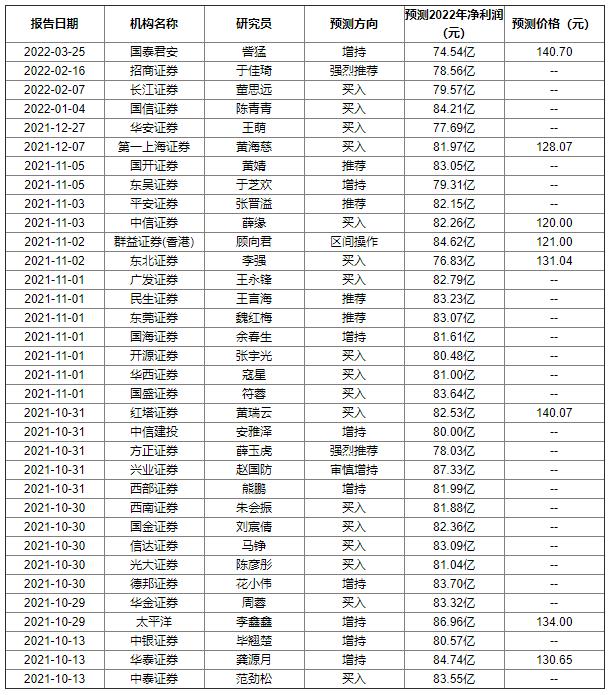 3月24日,海天味业(603288.SH)发布了2021年年报,作为调味品的龙头大哥,佛山市海天调味食品股份有限公司(简称“海天味业”)的业绩是最受投资者关注的,6个月内累计共34家机构,预测2022年净利润均值为81.81亿元,较去年同比增长22.65%。其中,17家机构“买入”,9家机构“增持”,4家机构“推荐”,2家机构“强烈推荐”,1家机构“审慎增持”,1家机构“区间操作”。