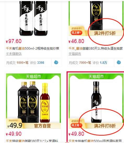 在天猫旗舰店,千禾高端酱油的打折促销信息随处可见,也说明了高端酱油市场竞争惨烈超出想象。高端酱油售价不高端,不仅仅是海天味业一家的尴尬,而是整个调味品市场的痛点。