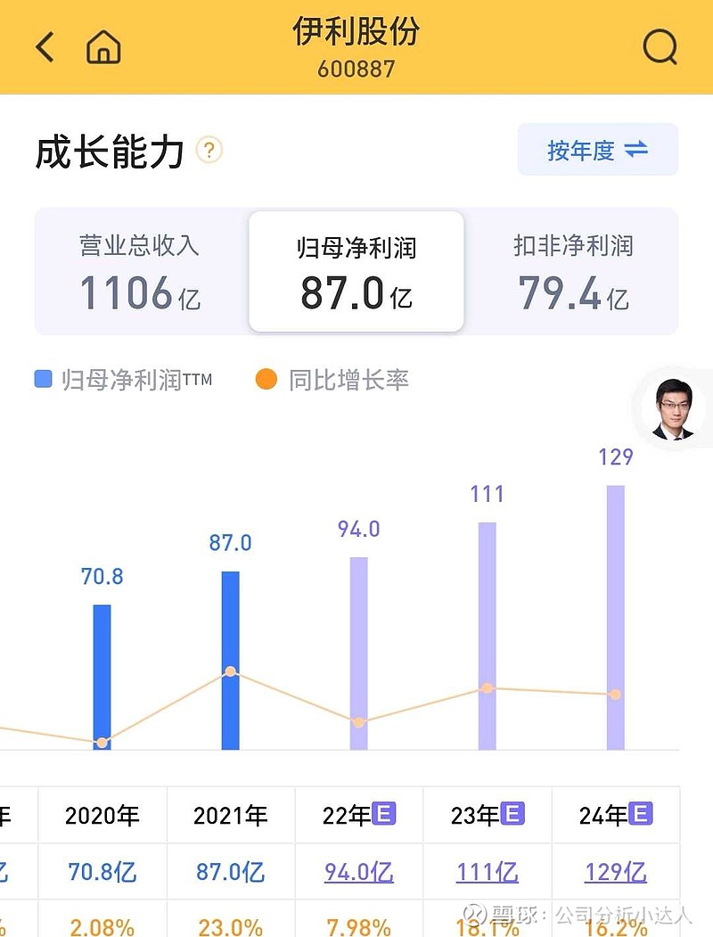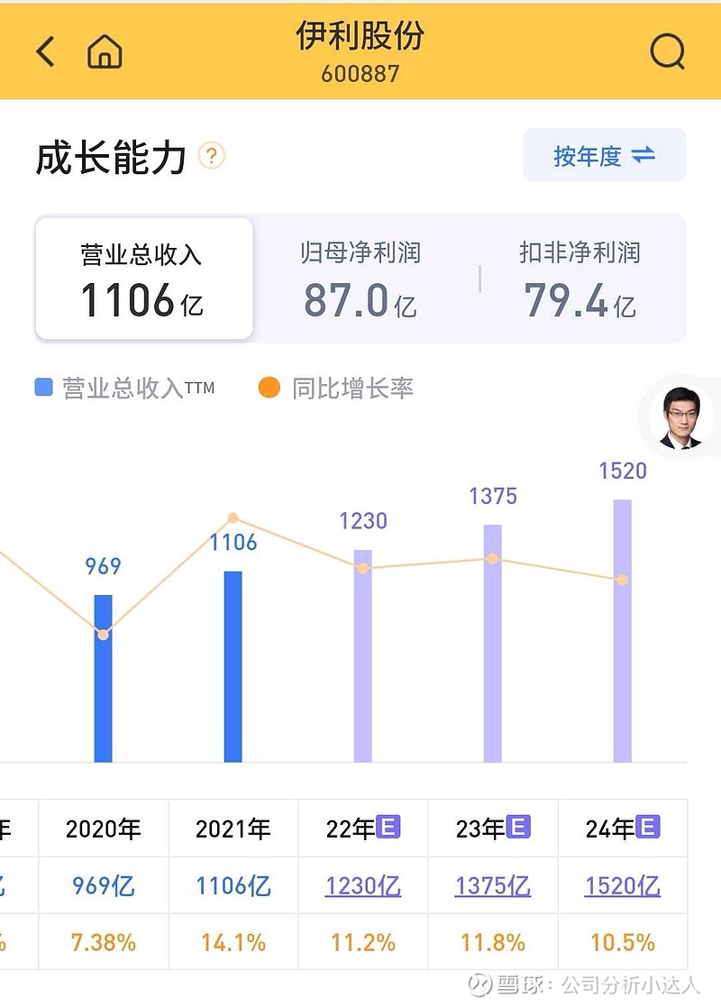 同时类比乳茅伊利股份,机构预期也是小双位数增长。