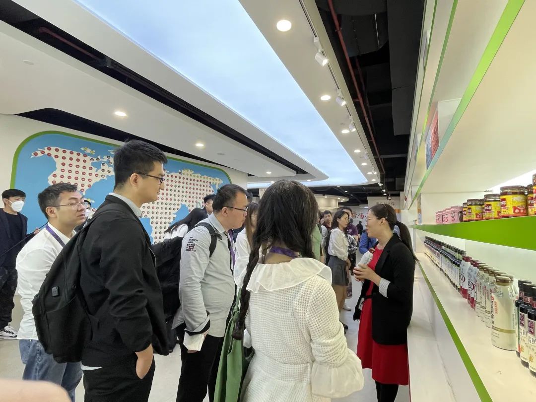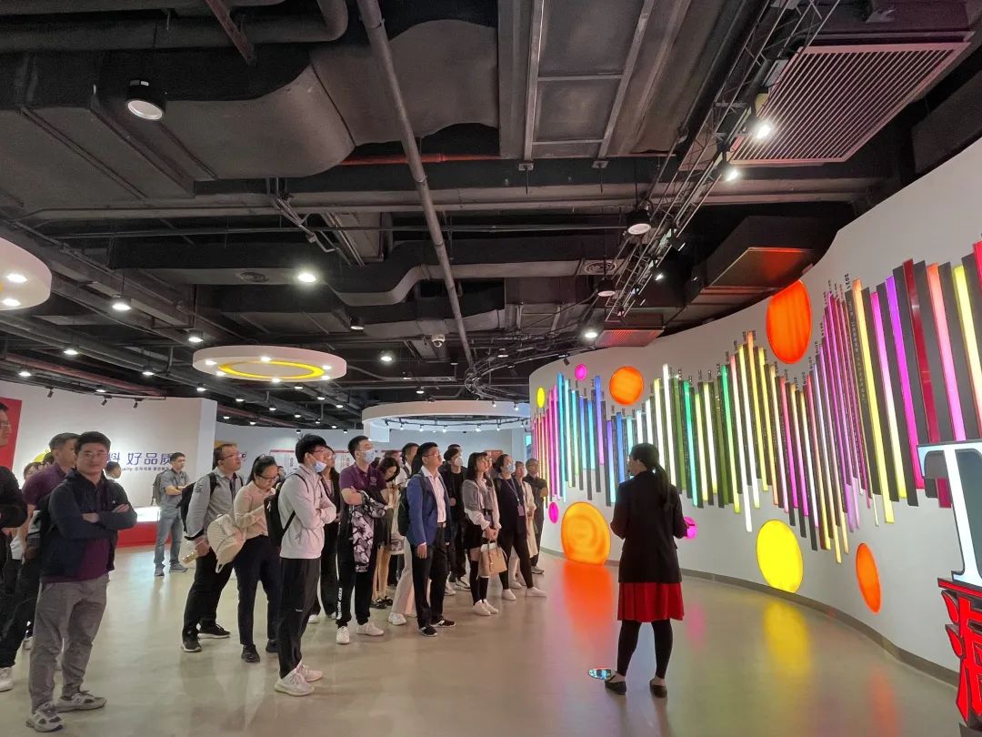 分享交流会开始前,清华大学MEM中心师生参观了娅米的阳光城堡,不仅对海天发展历程、产品体系展现出浓厚兴趣,更重点对极速灌装生产线、全自动无人立体彩仓等先进设备以及海天党建长廊进行了集中观摩学习,近距离领略了海天智能制造的实力以及党建成果。