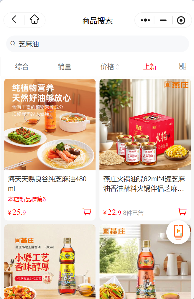 在海天官方商城,海天味业推出了“燕庄”火锅油碟(62ml*4罐)、“燕庄”头道初榨黑芝麻香油(500ml)、“燕庄”香芝麻油(300ml、100ml)、“燕庄”花生芝麻酱(300g)、海天“天赐良谷”火锅油碟(250ml)等多款匹配火锅场景的调味油产品。