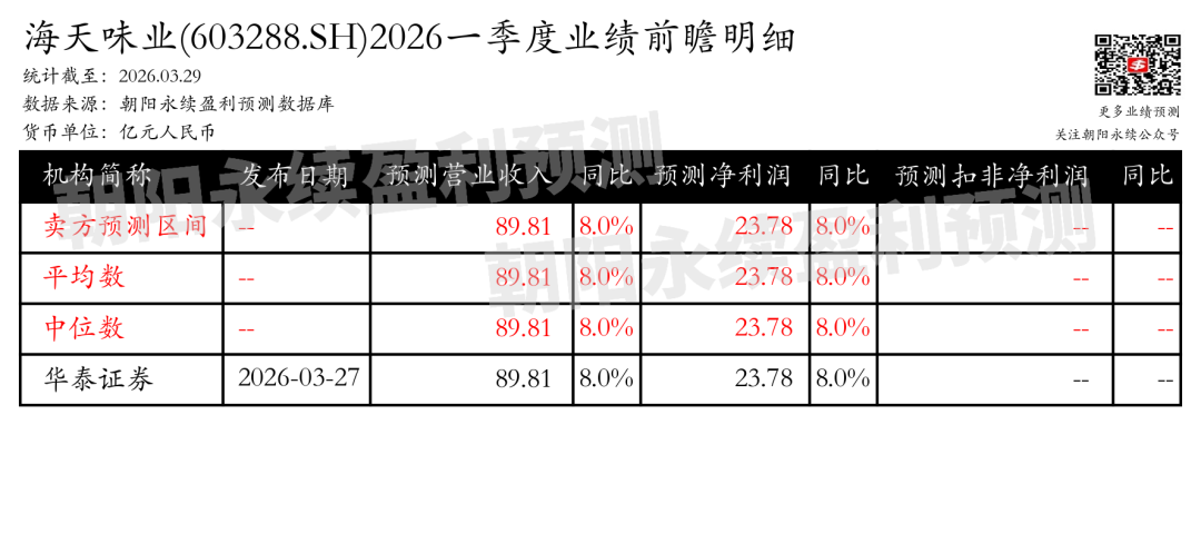 海天味业(603288.SH)将于2026年4月28日公布2026年一季报。