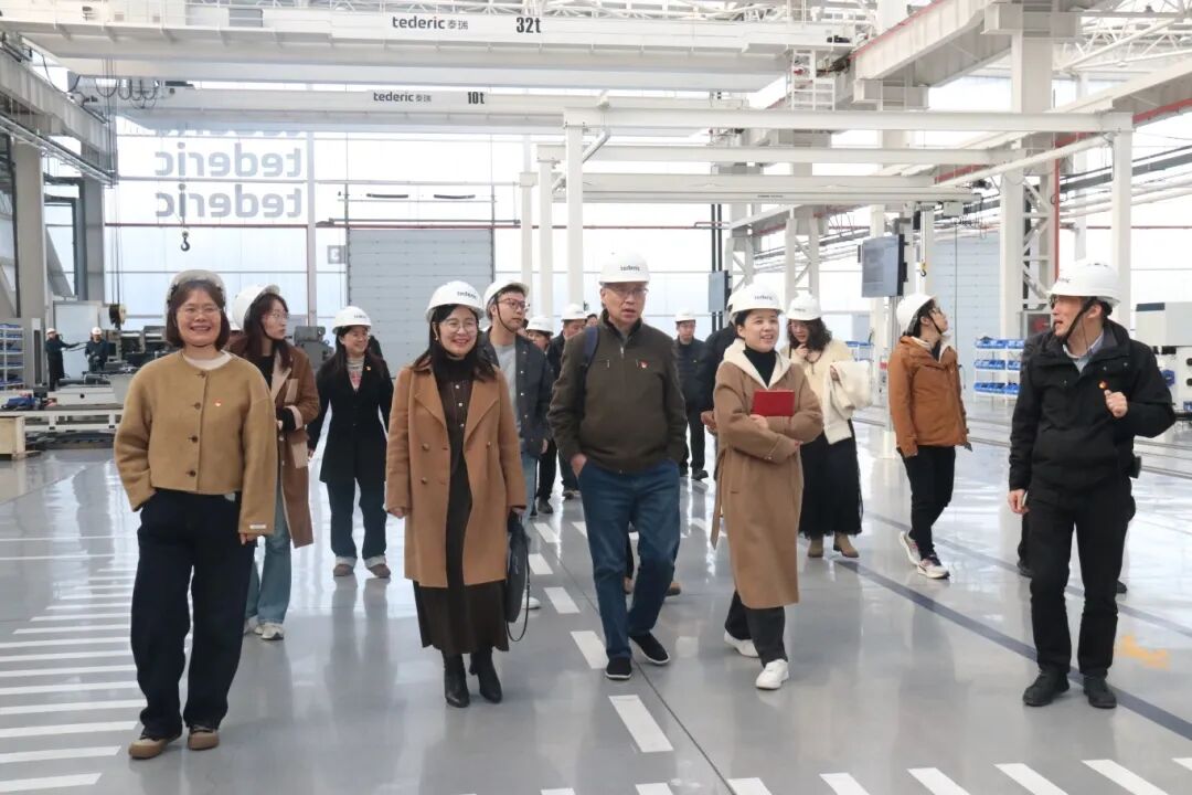 在泰瑞机器党委副书记祝新辉的带领下,大家参观了泰瑞企业展厅,了解企业发展的历程,一幅幅历史照片、一件件上墙荣誉、一块块成果展示,生动展现了企业从初创到行业标杆的成长轨迹;走进了车间,了解生产产品的过程。现代化的厂区、先进的装备、精益的管理,智能制造的示范,让片组单位深刻体会到落实新发展理念、推动新质生产力带来的科技进步。