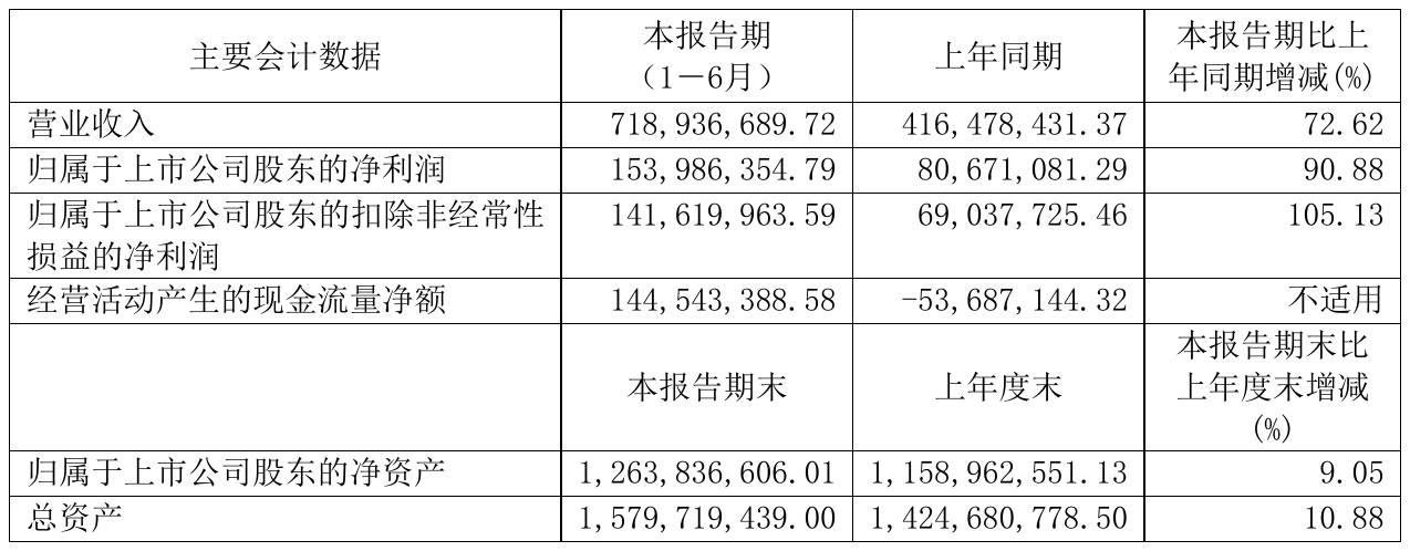 挖贝网8月29日,斯达半导(603290)近日发布2021年半年度报告,报告期内营业收入718,936,689.72元,同比增加72.62%;净利153,986,354.79元,同比净利增加90.88%。