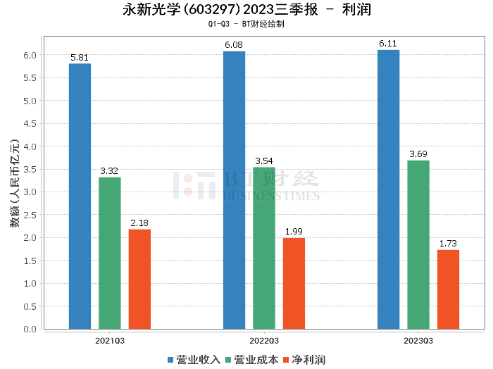 在利润方面,永新光学报告期内营业收入微增至6.11亿元,而营业利润和净利润分别为1.91亿元和1.73亿元,较上年同期分别下降了16.23%和13.07%。毛利率和净利率分别为39.56%和28.41%,与上年同期相比有所下降。这些变化可能与营业成本的增加以及市场竞争等因素有关。