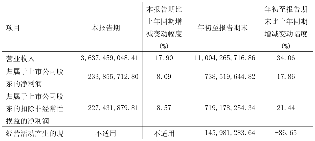 10月20日,杭叉集团(603298)近日发布2021年前三季度报告,报告期内营业收入11,004,265,716.86元,同比增加34.06%;净利738,519,644.82元,同比净利增加17.86%。