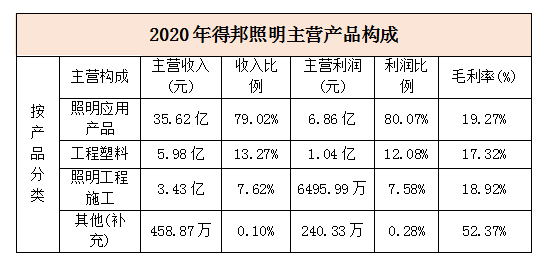 从近几年的营收中,我们可以看出,得邦照明的发展没有大起大落,属于平稳增长型企业。2020年,在面对席卷全球的新冠肺炎疫情和复杂多变的国际形势下,照明行业迎来了前所未有的挑战和机遇。得邦照明紧跟行业发展步伐,积极调整业务布局,进军细分照明领域,保持营收的稳步增长。