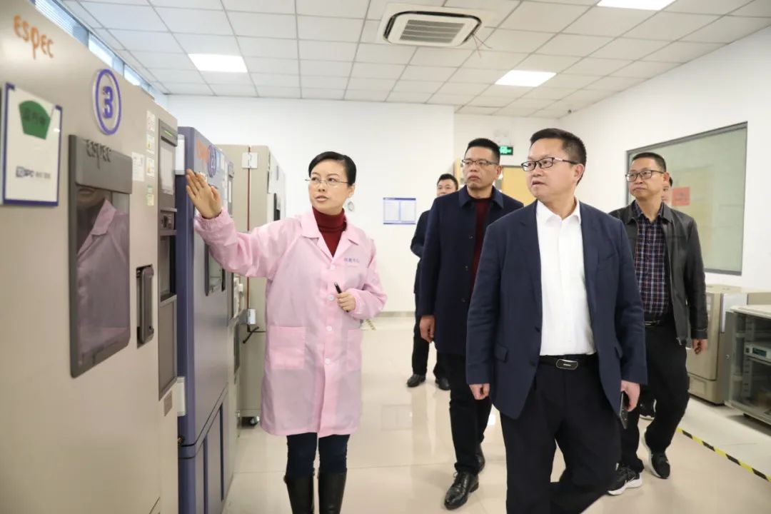 在公司领导的陪同下,瑞金市领导一行先后参观了公司的开发部、测试中心、车用照明生产车间和光体验中心。