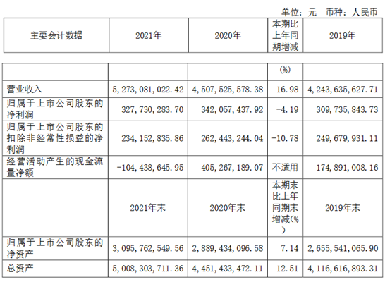 3月10日,得邦照明发布2021年年度报告,全年实现营收52.73亿元,同比增加16.98%;归属上市公司股东的净利润3.28亿元,同比下降4.19%;归属于上市公司股东的扣除非经常性损益的净利润 2.34亿元,同比下跌10.78%。