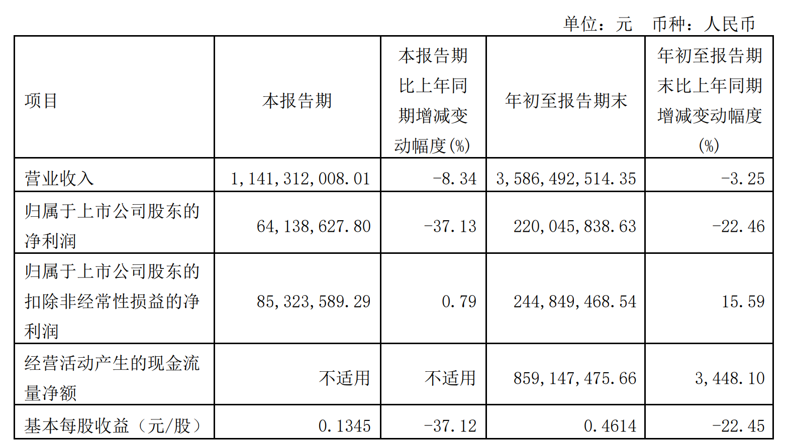 公告显示,得邦照明2022年第三季度营业收入为11.41亿元,同比减少8.34%;归属于上市公司股东的净利润为6413.86万元,同比减少37.13%。前三季度实现营业收入35.86亿元,同比减少3.25%。归属于上市公司股东的净利润2.2亿元,同比减少22.46%。