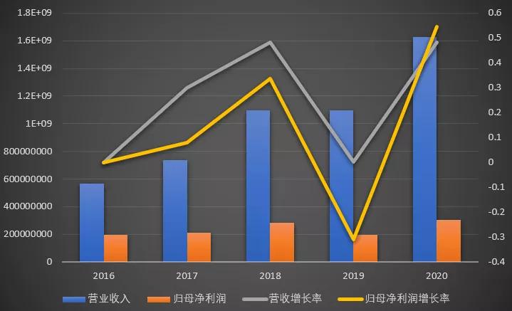 2020年,公司营收16.28亿元,归母净利润3.02亿元,分别增长了48%和61%。从历史变化趋势来看,公司的营收增长明显,但净利润几乎是没有增长的,增收不增利。