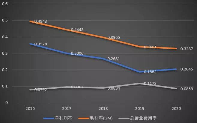 2020年公司的毛利率32.87%,净利润的增长乏力与毛利率持续降低有关,结合行业本身竞争激烈的特点和产业链发展历程来看,这几乎是必然趋势,都是通过让利来获取市场份额和地位。