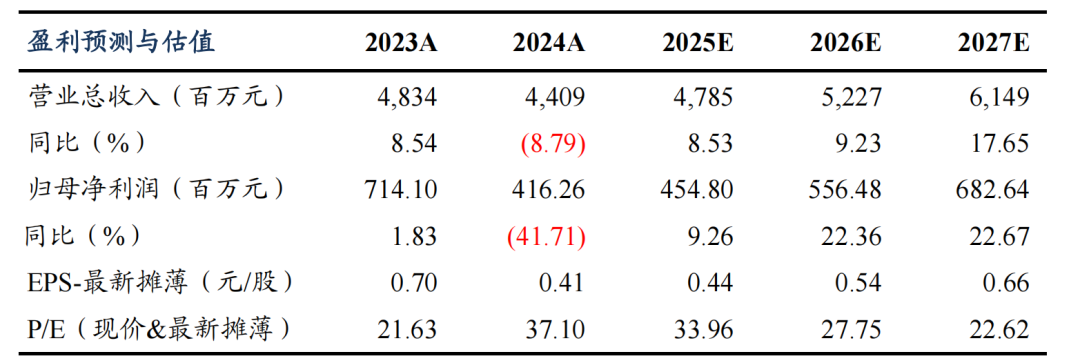 考虑到公司所处行业竞争激烈,我们将公司2025-2027年归母净利润的预测下调为4.55/5.56/6.83亿元(前值5.00/6.05/7.50亿元),市盈率分别为34倍、28倍、23倍,但公司储能+出海步入收获期,且人形机器人布局有望提供持续性增量,我们仍维持对公司的“买入”评级。