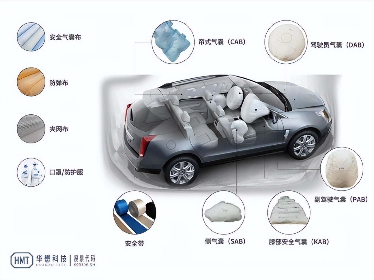 华懋科技是汽车被动安全领域的龙头企业,主营业务是汽车安全气囊材料,产品线覆盖汽车安全气囊布、安全气囊袋以及安全带等被动安全系统部件。