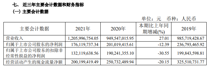 2021年度,华懋科技实现营业收入约12亿元,同比增长27.01%;实现归属于上市公司股东的净利润约1.76亿元,同比下降12.39%。