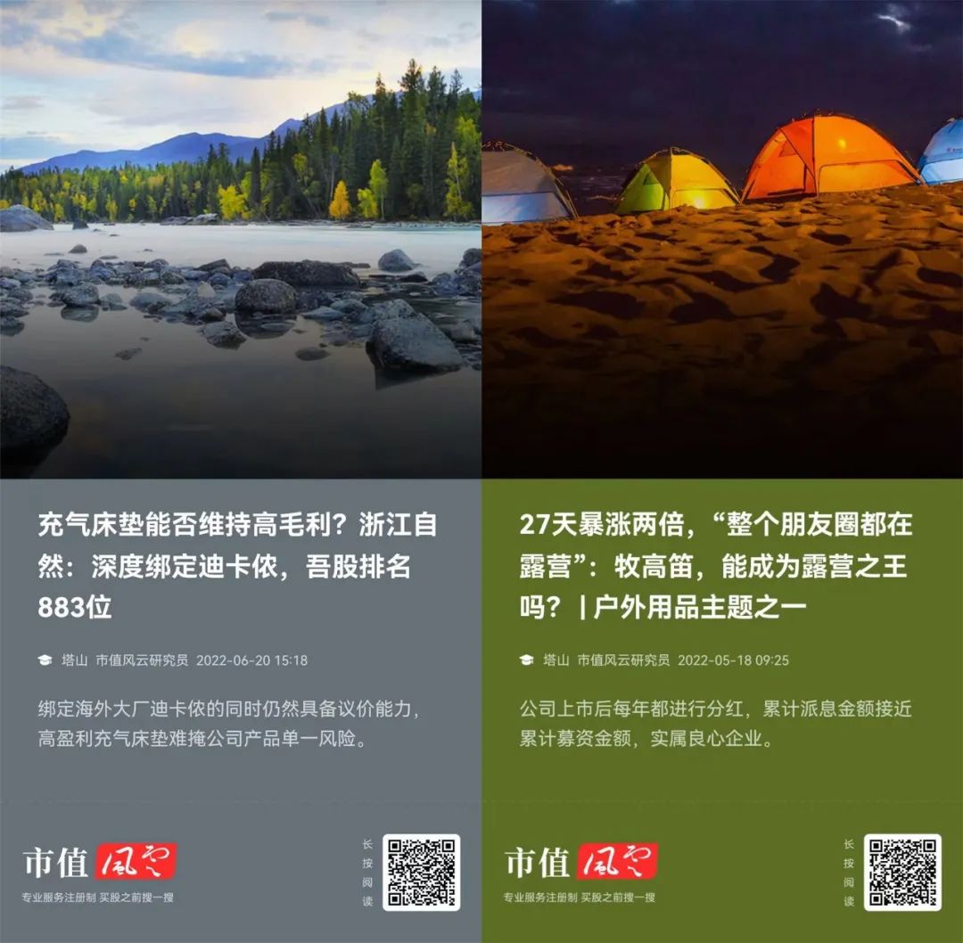 牧高笛(603908.SH)也在年报中披露,市场调研公司Report Linker认为,中国作为世界第二大经济体,预计到2027年露营设备市场将达到159亿美元的规模,复合年增长率为9.1%。