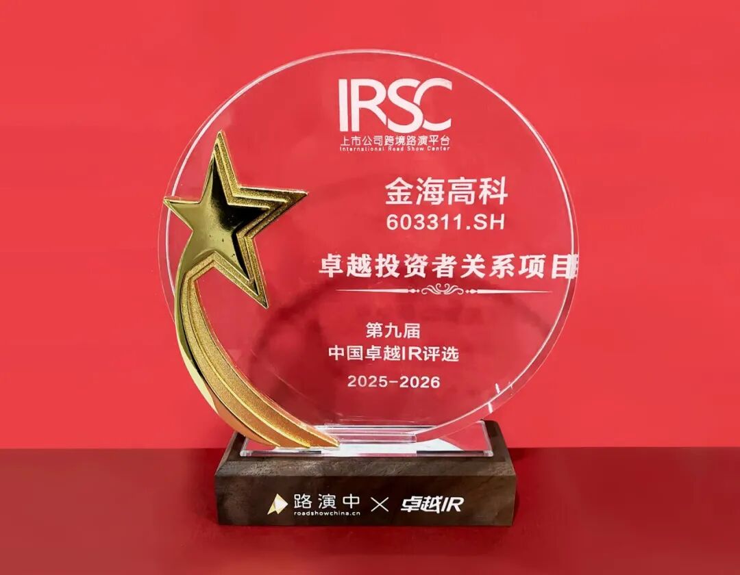 近日,“2026上市公司投资者关系创新峰会暨第九届中国卓越IR颁奖盛典”在深圳举行。浙江金海高科股份有限公司荣获第九届中国卓越IR“卓越投资者关系项目奖”,再获资本市场对金海高科在投资者关系(IR)领域管理成就的认可。