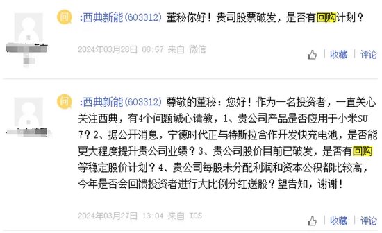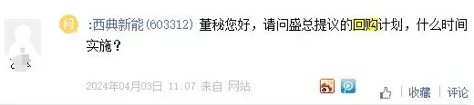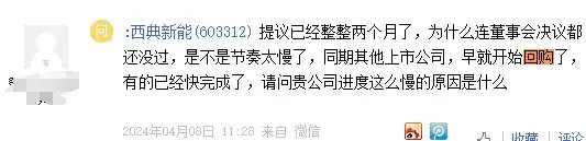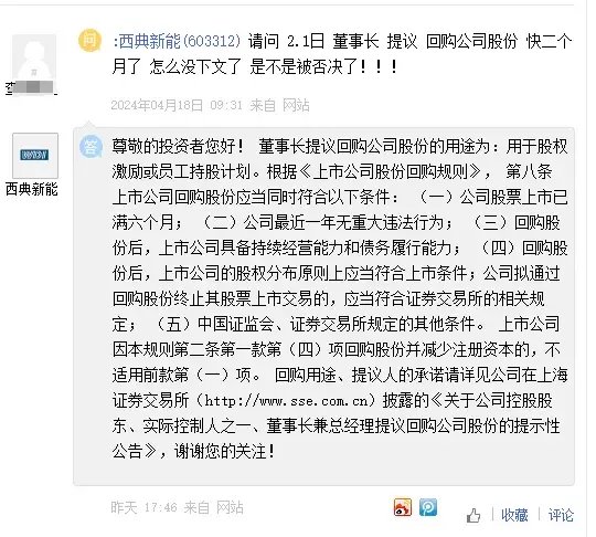 在媒体报道西典新能回购无进展之后,西典新能终于在4月25日下午,对上证e互动的投资者提问进行了回复。