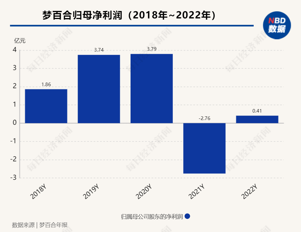 2020-2022年,梦百合分别实现营业收入约为65.3亿元、81.4亿元、80.2亿元,实现归母净利润约为3.79亿元、-2.76亿元、0.41亿元。