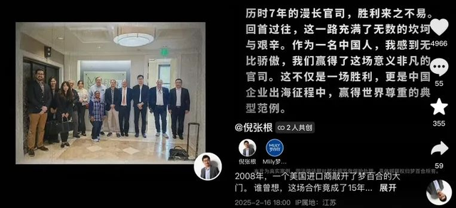 “所以对于出海呢,我们要有信心走出去,一定要勇敢去面对这个过程当中的风风雨雨。”在近期的一次对外演讲中,倪张根慷慨激昂地说道。或许,“赢得”这样一个困难重重的跨国官司,会让这位充满激情的企业家在出海路上愈加斗志昂扬,书写属于中国人的传奇故事。