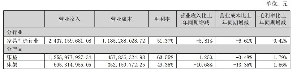 从各企业品类表现来看,床垫、沙发等核心品类成为营收增长的“压舱石”,且普遍保持较高毛利率,为利润增长提供支撑: