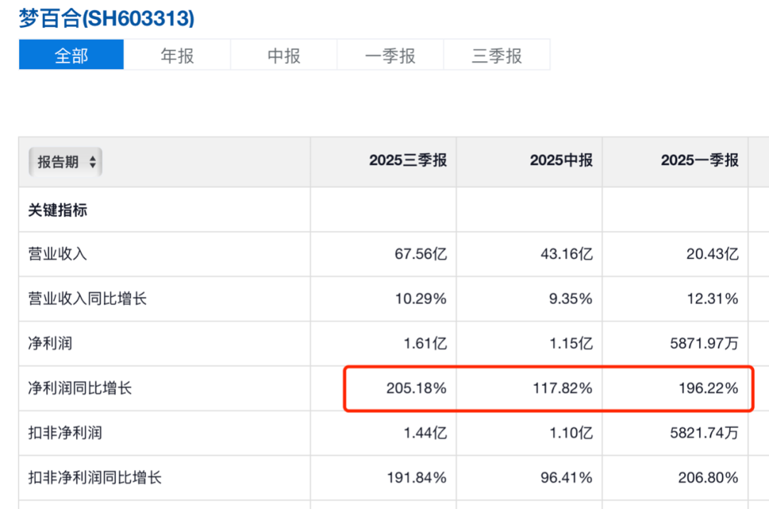 从业绩角度来看,今年以来,梦百合的业绩呈现出明显的好转趋势。据其10月29日发布的2025年三季度报告显示,梦百合前三季度实现营收67.56亿元,同比增长10.29%;实现净利润1.61亿元,同比增长205.18%。其中,第三季度实现营收24.40亿元,同比增长11.98%;实现净利润5170.09万元,同比增长118.70%。