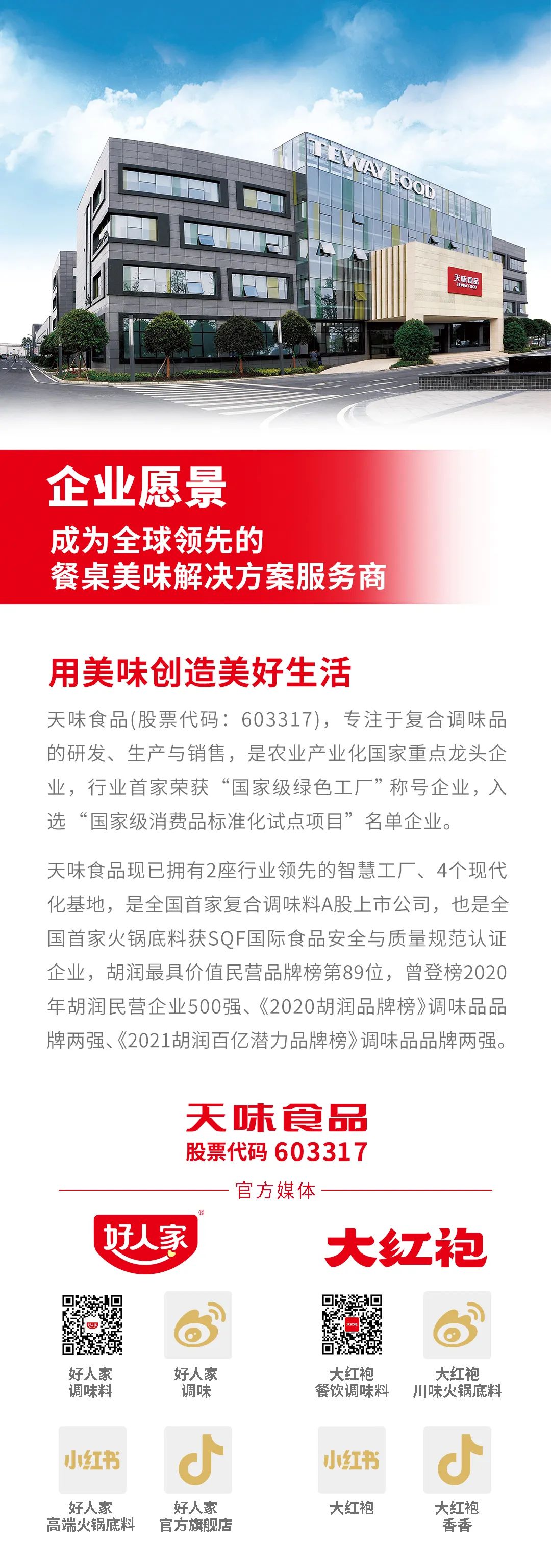 20多年来,面对复杂多变的市场环境,天味食品始终秉承“诚信务实”核心价值观,推进品牌高质量建设。