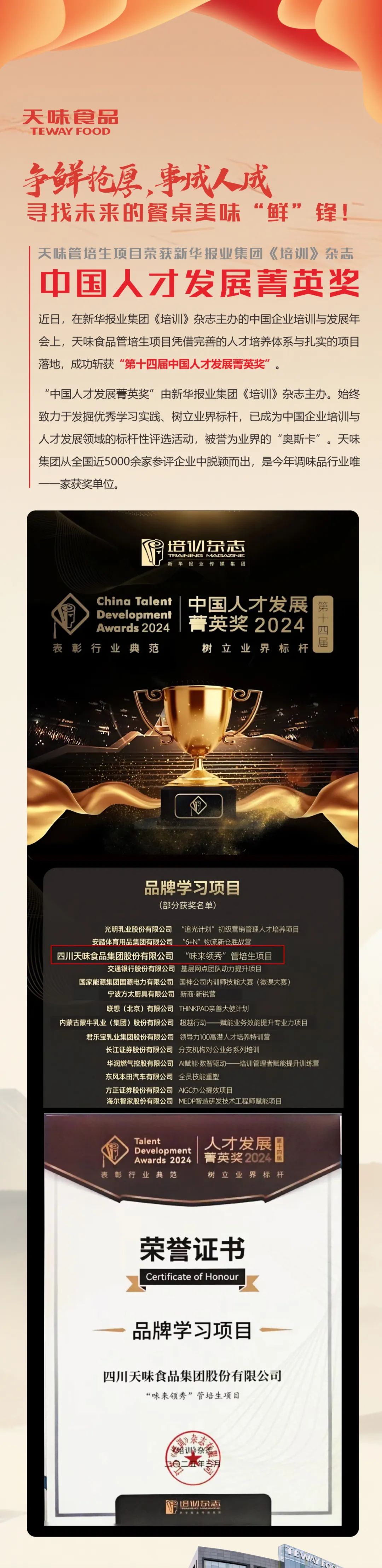 天味食品荣获中国人才发展菁英奖,深耕人才储备,锚定未来增长