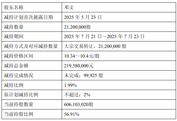 天味食品于2025年7月24日发布关于控股股东及其一致行动人之间内部转让股份计划的结果公告。邓文于2025年7月21日至7月23日通过大宗交易方式向添利19号基金、添利19号1期基金合计转让21,200,000股,占公司总股本的1.99%。本次内部转让股份计划实施完毕。减持价格区间为10.34元/股至10.4元/股元/股,减持总金额为219,580,000元。