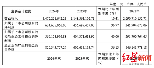 从财务数据来看,天味食品近年来表现出稳健的增长态势。财报显示,2022年至2024年,公司营收分别为26.91亿元、31.49亿元和34.76亿元,归母净利润分别为3.42亿元、4.57亿元和6.25亿元。尽管营收增速有所放缓,但整体业绩仍然保持增长。然而,今年一季度,公司业绩出现下滑,实现营收6.42亿元,同比下降24.8%;归母净利润为7473.3万元,同比下降57.53%。公司方面表示,这主要是由于销售下降所致。