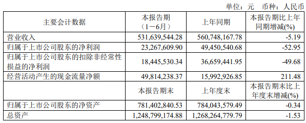 公司2022半年度营业成本4.72亿元,同比上升0.1%,营业收入同比下降5.2%,毛利率下降4.7%。期间费用率为6.3%,较上年升高0.7个百分点。经营性现金流大幅上升211.5%至4981万元。