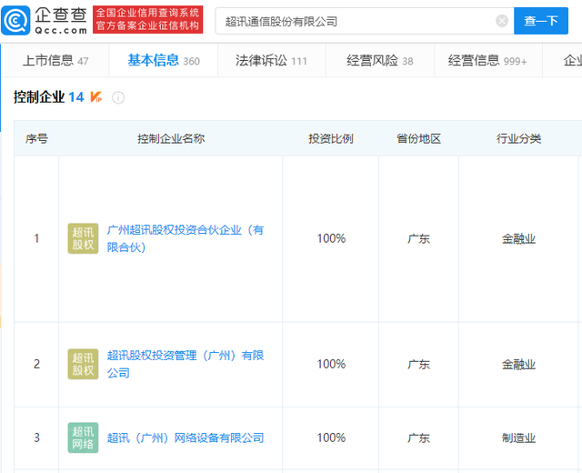 超讯通信成立于1998年,是国内全专业通信技术服务商、全行业物联网解决方案提供商、全领域新能源服务商、全生态智能硬件制造商。此前超讯通信共有14家控制企业。