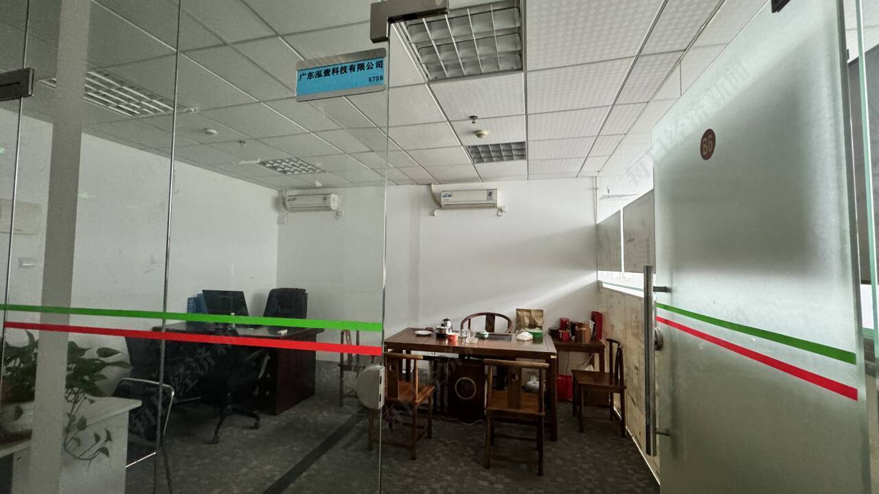 记者的确在5楼B区的B6、B7室看到了广东泓壹的公司名字。该办公室约10平方米,当天玻璃门一直开启,但未见有人员出现。办公室内景一览无遗,除了一张办公桌、一台电脑、一张茶桌外,没有其他布置。