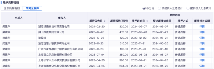 梁建华未解押的股份质押情况图源:ifind