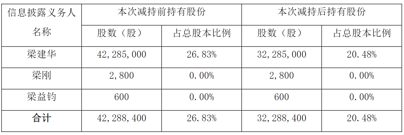 此次减持,公司控股股东、实际控制人梁建华原本是与自然人岳颋签署的《股份转让协议》,计划通过协议转让方式将其所持有的公司股份1000万股(占公司总股本的6.35%)以25.84元/股的价格转让给岳颋。