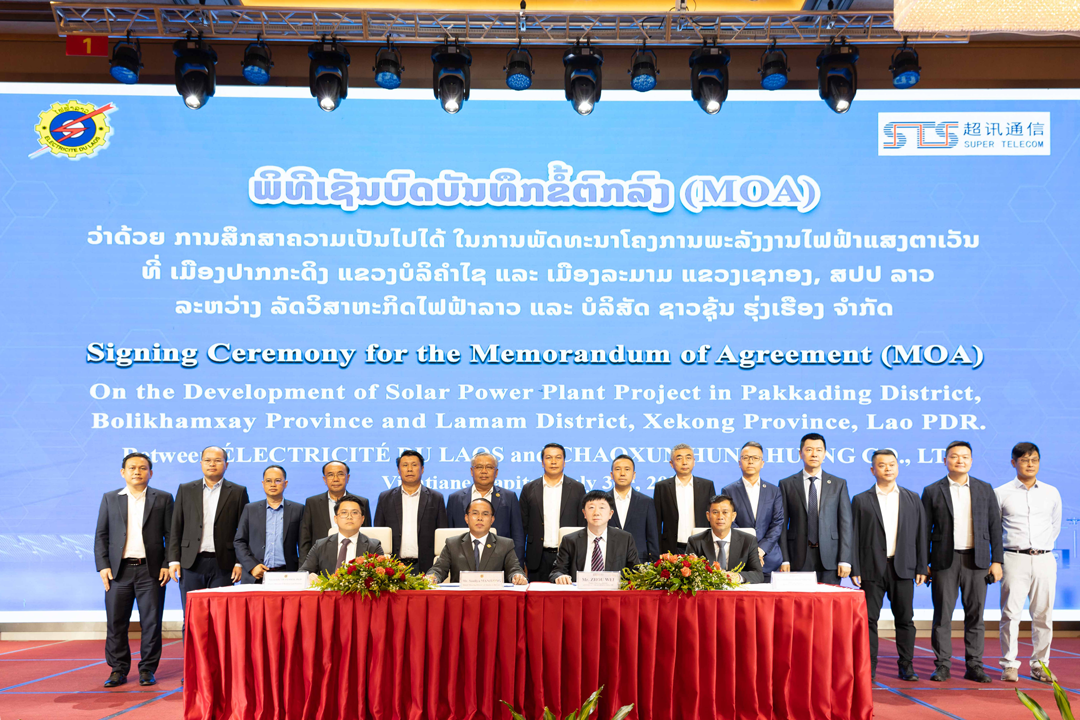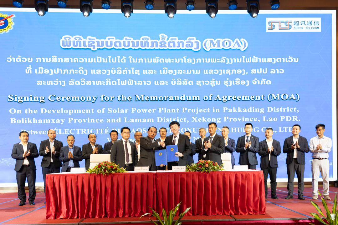 7月30日,超讯通信旗下 Chaoxun Guangming Co.,Ltd(超讯光明有限公司)与老挝国家电力公司(EDL)在万象正式签署波里坎塞省和色贡省光伏电力项目备忘录协议(MOA)。
