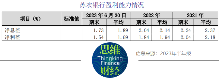 然而,值得注意的是,近几年该行净息差和净利差持续走低。年报显示,2021年至2023年上半年,该行期末净息差分别是2.24%、2.04%、1.73%;净利差分别是2.04%、1.84%、1.54%。