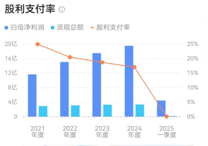 比如业绩这几年取得了较快发展,但苏农银行的现金分红比例不升反降。2021年至2024年,该行的归母净利润分别为11.6亿、15.02亿、17.43亿、19.45亿,但据数据显示,该行同期的现金分红占归母净利润的比例分别为24.86%、20.41%、18.64%、16.98%,逐年下滑。