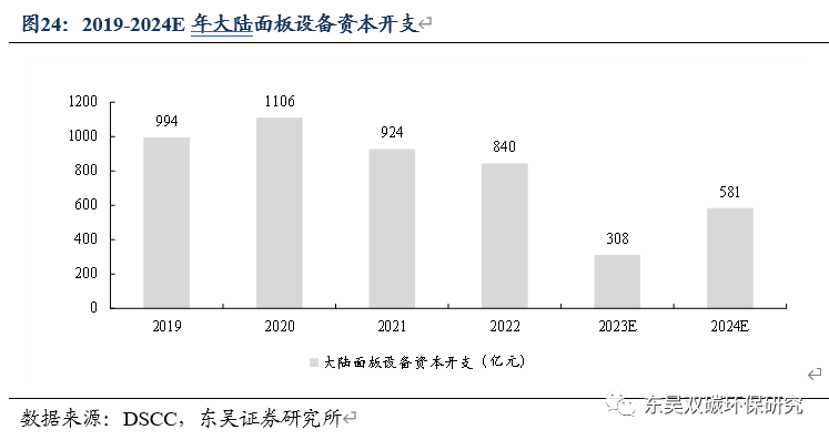 2)参考DSCC的预测,我们认为面板进入存量市场阶段,我们假设2023-2030年中国大陆面板设备资本开支保持每年-5%的增长,设备始终占据总资本开支的90%。